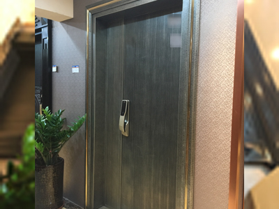 1、材料:表面正背面为铸铝板,铸铝板手绘环保仿古金漆,喷钢芯由两张1.0MM电解钢板夹高强度铝蜂巢构成。门扇四周用不锈钢304材料包边。门框使用1.2MM不锈钢板,手绘环保漆。