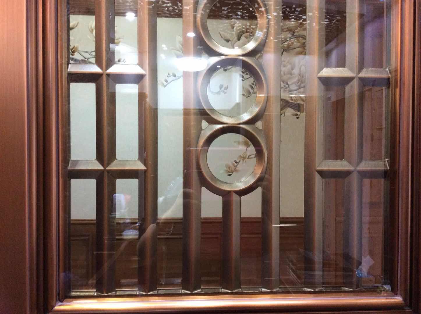 通风的铜门需要在铜门门芯花件必须采用实心门花,以保证其防盗性能。