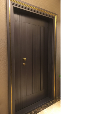 1、材料:表面正背面为铸铝板,铸铝板手绘环保仿古金漆,喷钢芯由两张1.0MM电解钢板夹高强度铝蜂巢构成。门扇四周用不锈钢304材料包边。门框使用1.2MM不锈钢板,手绘环保漆。